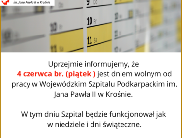 W piątek po dniu Uroczystosci Bożego Ciała krośnieński szpital będzie pracował jak w dzień świąteczny. Dowiedzieliśmy się, że w zwiażku z tym czynna będzie...