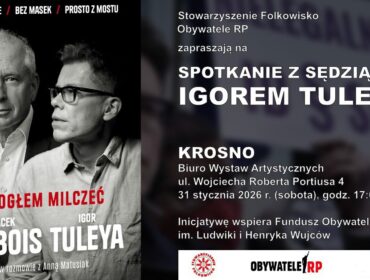 Obywatele RP, Wydawnictwo Purple Book oraz Stowarzyszenie Folkowisko zapraszają na spotkanie z sędzią Igorem Tuleyą – jednym z symboli niezawisłości sędziowskiej. Spotkanie będzie wieczorem...