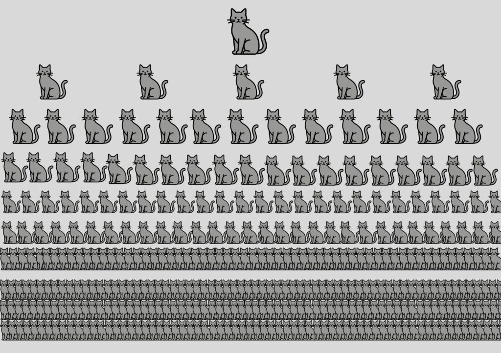 Grafika jest poglądowa, większość kociaków nie dożyje wieku rozrodczego ale każda kocica może mieć więcej niż jeden miot w roku.