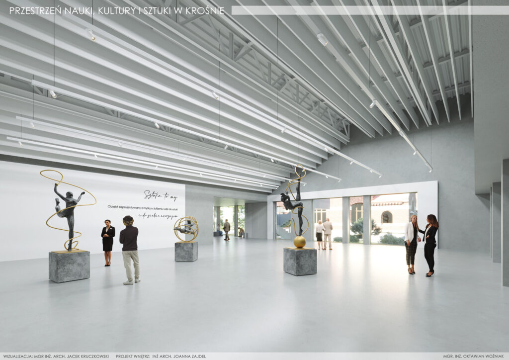 Inwestycja pod nazwą „Przestrzeń nauki, kultury i sztuki w Krośnie” obejmuje zarówno modernizację historycznego obiektu, jak i jego rozbudowę. W ramach projektu powstanie nowy budynek muzealny, połączony z pałacem podziemną przewiązką. Całość stworzy spójny kompleks umożliwiający prowadzenie szerokiego spektrum działań skierowanych do różnych grup społecznych i wiekowych.