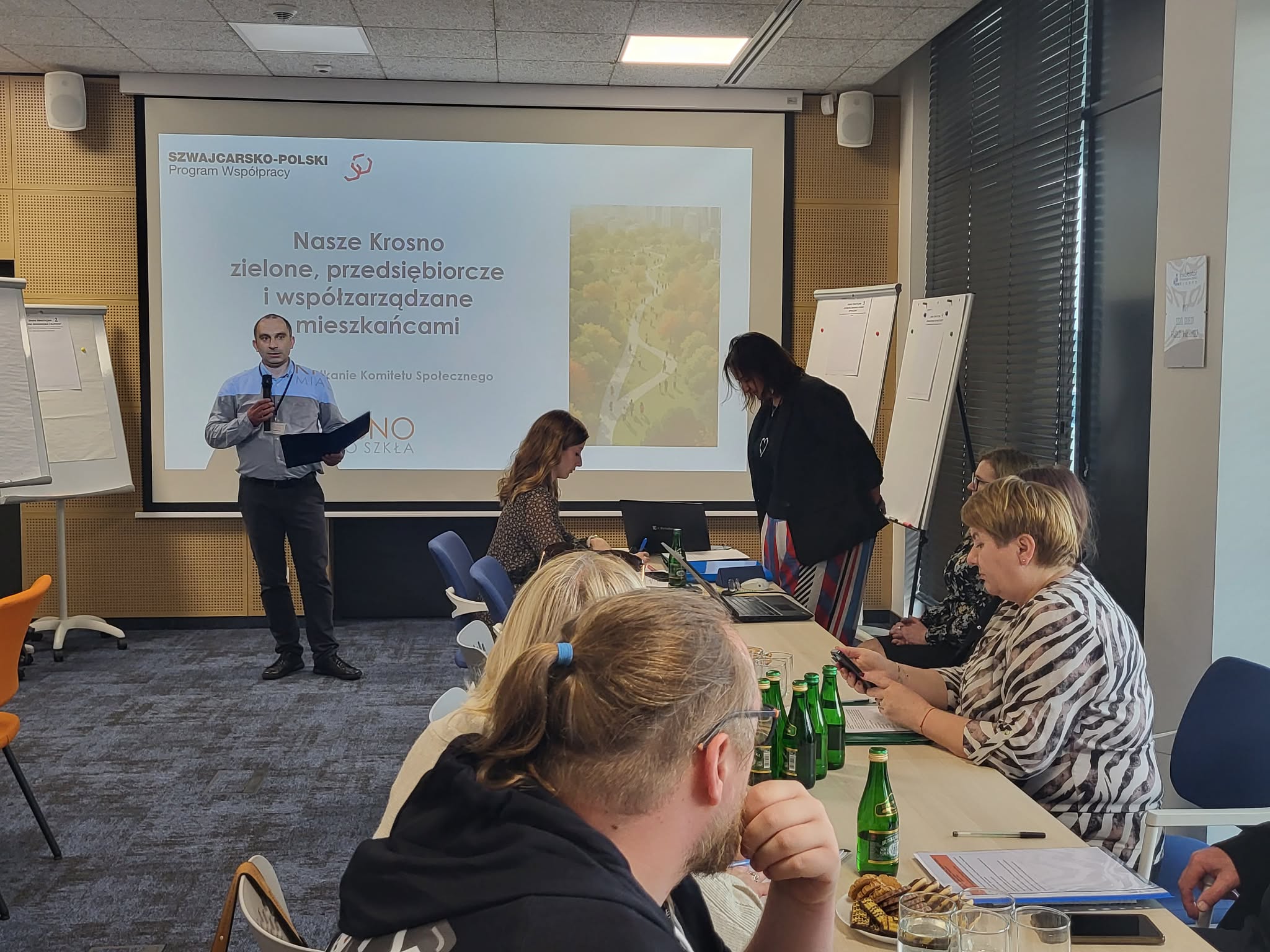 Podczas spotkania Zastępca Prezydenta Miasta Krosna Miranda Trojanowska, przedstawiła genezę projektu, a doradczyni ze Związku Miast Polskich Barbara Łączna, zaprezentowała założenia prac i role komitetów społecznych w projektach finansowanych ze środków Polsko-Szwajcarskiego Programu Rozwoju Miast. Następnie, Michał Żelechowski Kierownik Biura Innowacji Społecznych, przybliżył szczegółową rolę Komitetu Społecznego
