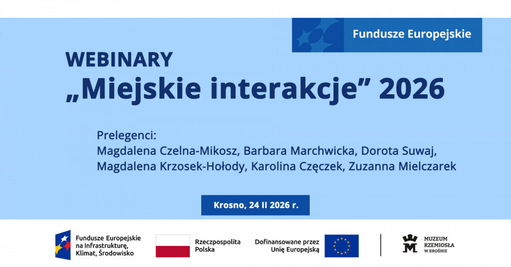 Webinary „Miejskie interakcje” realizowany w ramach projektu „Przestrzeń nauki, kultury i sztuki w Krośnie, współfinansowane przez Unię Europejską z programu Fundusze Europejskie na Infrastrukturę, Klimat i Środowisko 2021-2027.