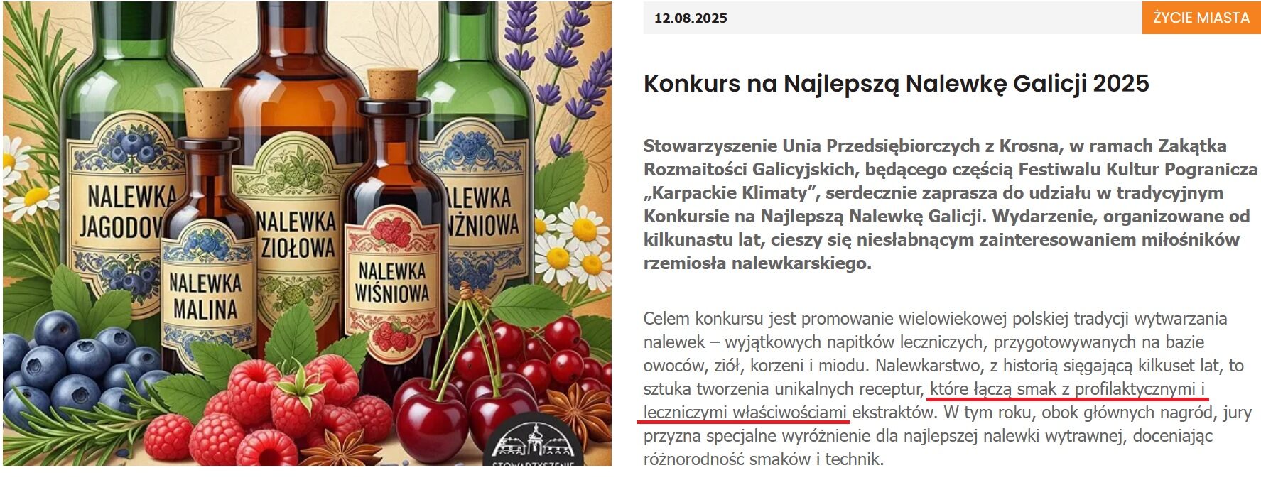 Powołanie się w tym kontekście na fakt, że “gdzie indziej też są konkursy”, jest po prostu absurdalne. Po pierwsze to argument na poziomie: “…a szwagier przejeżdża zawsze na czerwonym świetle i nic mu się nie stało”, albo „…a Jasio też nasikał do piaskownicy”. To, że ktoś inny coś robi nie znaczy, że można to bez szkody naśladować. Po drugie, przeglądnąłem kilka ogłoszeń o analogicznych konkursach i wiecie co? Nie trafiłem na żadne, w którym byłoby o “profilaktyce zdrowia”. Konkursy na nalewki organizowane są np. przez izby aptekarskie, ale nawet tam nie ma mowy o “leczniczym działaniu”. W przypadku konkursu propagowanego przez Prezydenta Krosna, co z całą mocą podkreślam, sednem skargi było twierdzenie o “leczniczych właściwościach napoju alkoholowego”. Nie wiem, czy radni potrafią wskazać inny konkurs związany z “rzemiosłem alkoholowym” w Polsce, w którym ktoś otwarcie twierdził, że alkoholowy napitek ma dobry wpływ na zdrowie. Ja nie znalazłem, ale oczywiście nie sprawdziłem wszystkich.
