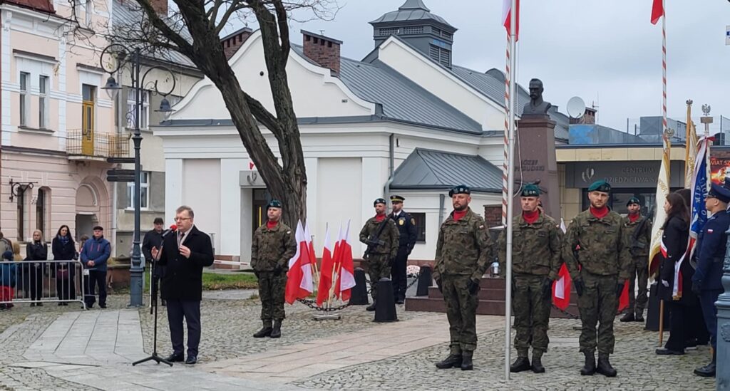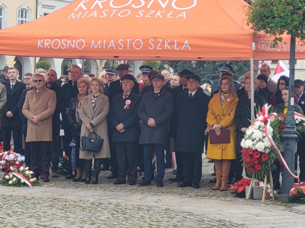 Dalsza część miejskich uroczystości odbyła się pod pomnikiem Marszałka Józefa Piłsudskiego przy krośnieńskim Rynku. Piotr Babinetz, poseł i historyk z Krosna, podczas przemówienia przybliżył historię starań i walk o Niepodległość Polski. Szczególnie podkreślił fakt 1000-lecia Koronacji Bolesława Chrobrego. Na tle innych ważnych wydarzeń poseł mówił o Krośnie i zaangażowaniu naszych przodków w sprawę Niepodległości. Piotr Babinetz przypominał mało znany fakt, że to pod Krosnem wojska Gabriela Wojniłłowicza stoczyły przełomową bitwę podczas Potopu Szwedzkiego.