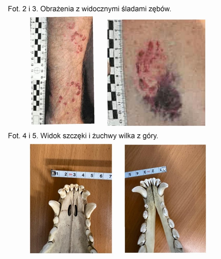 „Analiza przedstawionej dokumentacji z bardzo dużym prawdopodobieństwem wyklucza możliwość spowodowania obrażeń widocznych na zdjęciach przez wilka. Zarówno zeznania pogryzionego, charakter ataku i obrażeń jak i ich rozmiary ran wskazują na znacznie mniejsze zwierzę, prawdopodobnie niewielkiego psa lub psy, które dokonały wielokrotnych ugryzień poszkodowanego” – stwierdza Prof. dr hab. Rafał Kowalczyk z Instytutu Biologii Ssaków PAN.