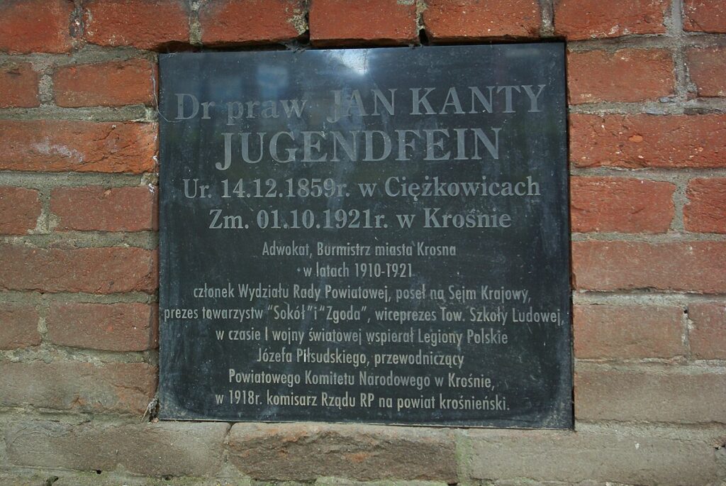 Jan Kanty Jugendfein – prawnik, adwokat, poseł do Sejmu Krajowego Galicji, burmistrz Krosna, działacz społeczny. Wspierał organizacje niepodległościowe i weteranów walk o Niepodległość. Zarządzeniem prezydenta RP Ignacego Mościckiego z 27 czerwca 1938 został pośmiertnie odznaczony Medalem Niepodległości za pracę w dziele odzyskania Niepodległości.
